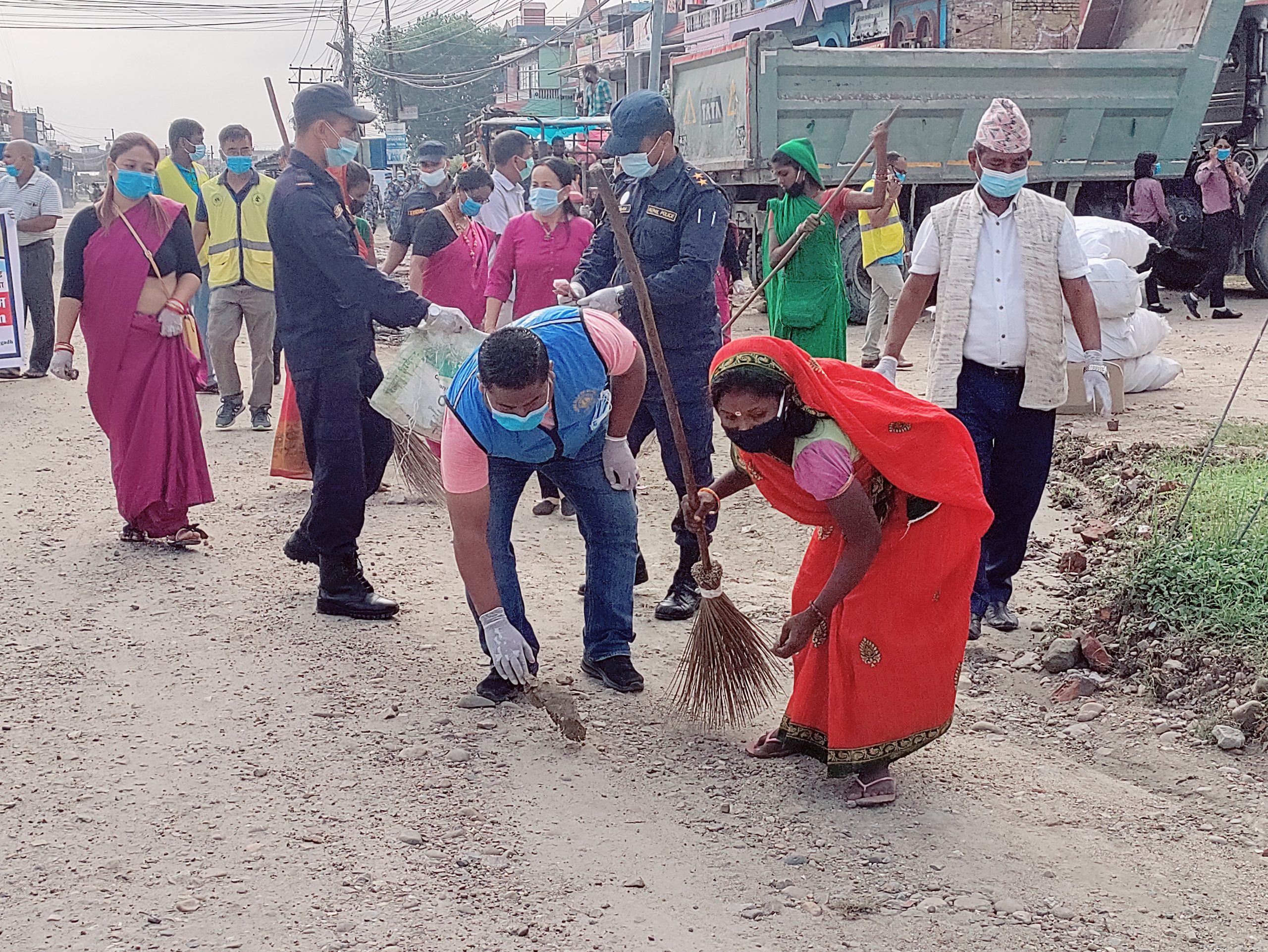 सडकको दायाँबायाँ रहेका प्लाष्टिकका फोहोर र अन्य फोहोर संकलन गरी नगरपालिकाको २ वटा ट्रयाक्टरले उठाएको सघाएको थियो ।