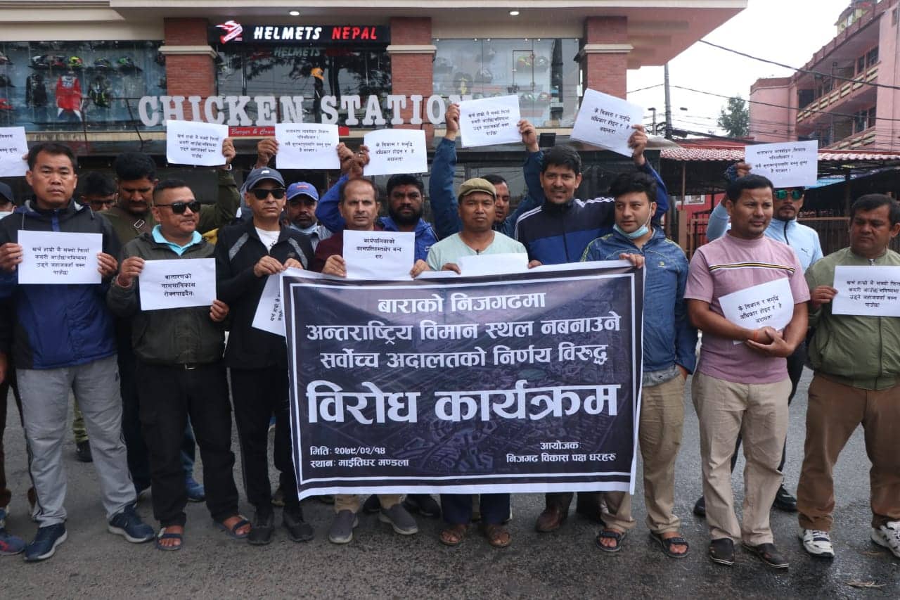 सर्वोच्चको निर्णय विरुद्ध माईतिघरमा निजगढबासीको प्रदर्शन (फाेटाे फिचर)