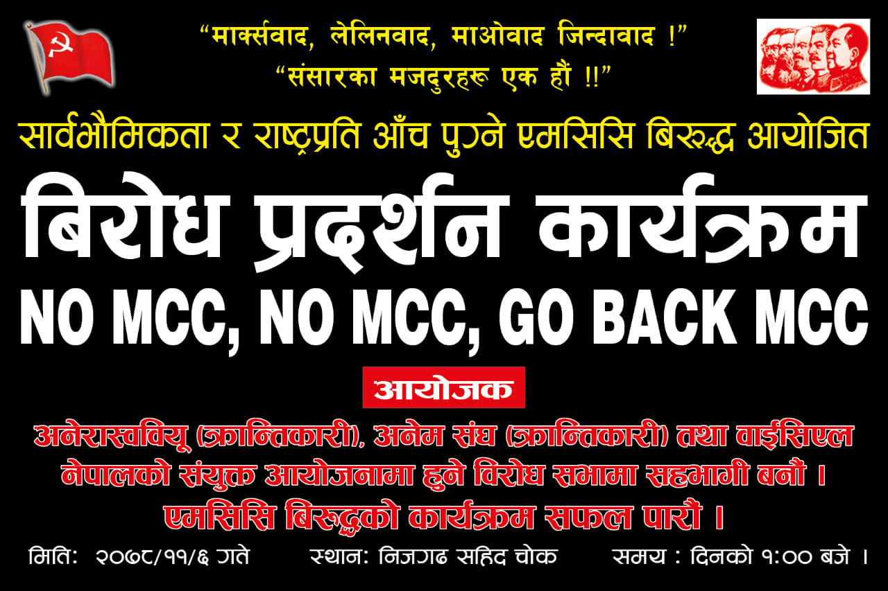 निजगढमा एमसीसीको विरोध माओवादी केन्द्रले भोली प्रदर्शन गर्ने