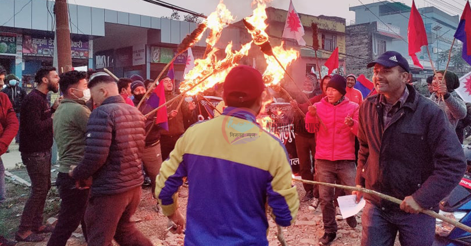 सरकारविरुद्ध युवा संघ नेपालद्वारा बाराको निजगढमा प्रदर्शन