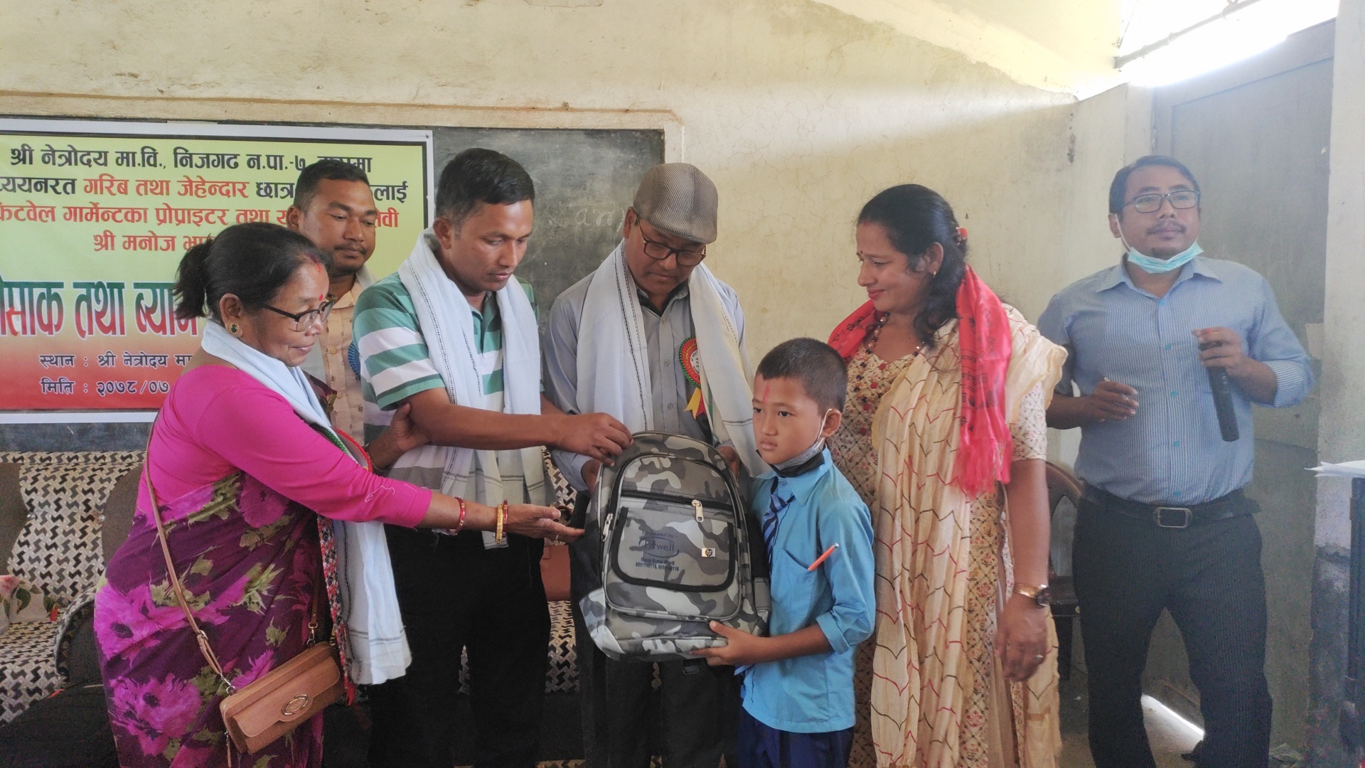 कोरोना बीमाको रकमबाट भारतीले गरे बिद्यार्थीलाई पोसाक तथा ब्याग वितरण